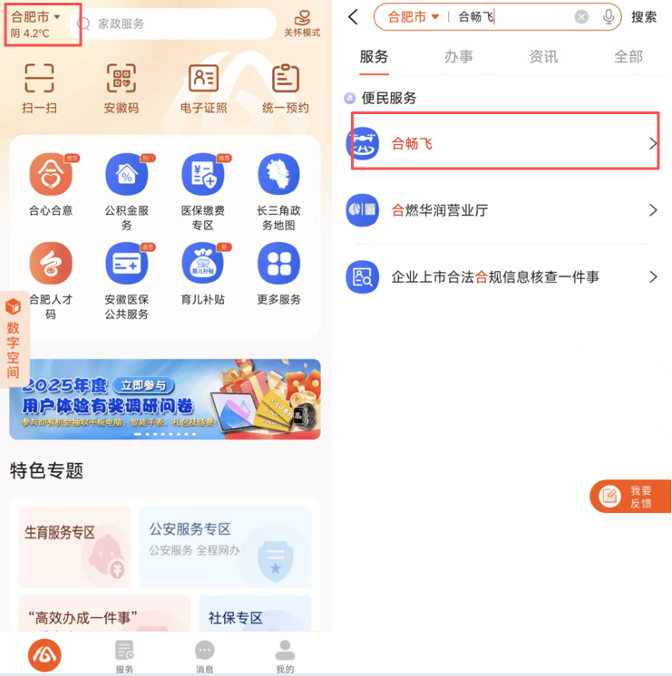 2.点击“消息登记”,点击进入可查看具体消息;正在首页搜刮“合畅飞”,选择相对应的类型进行登记。